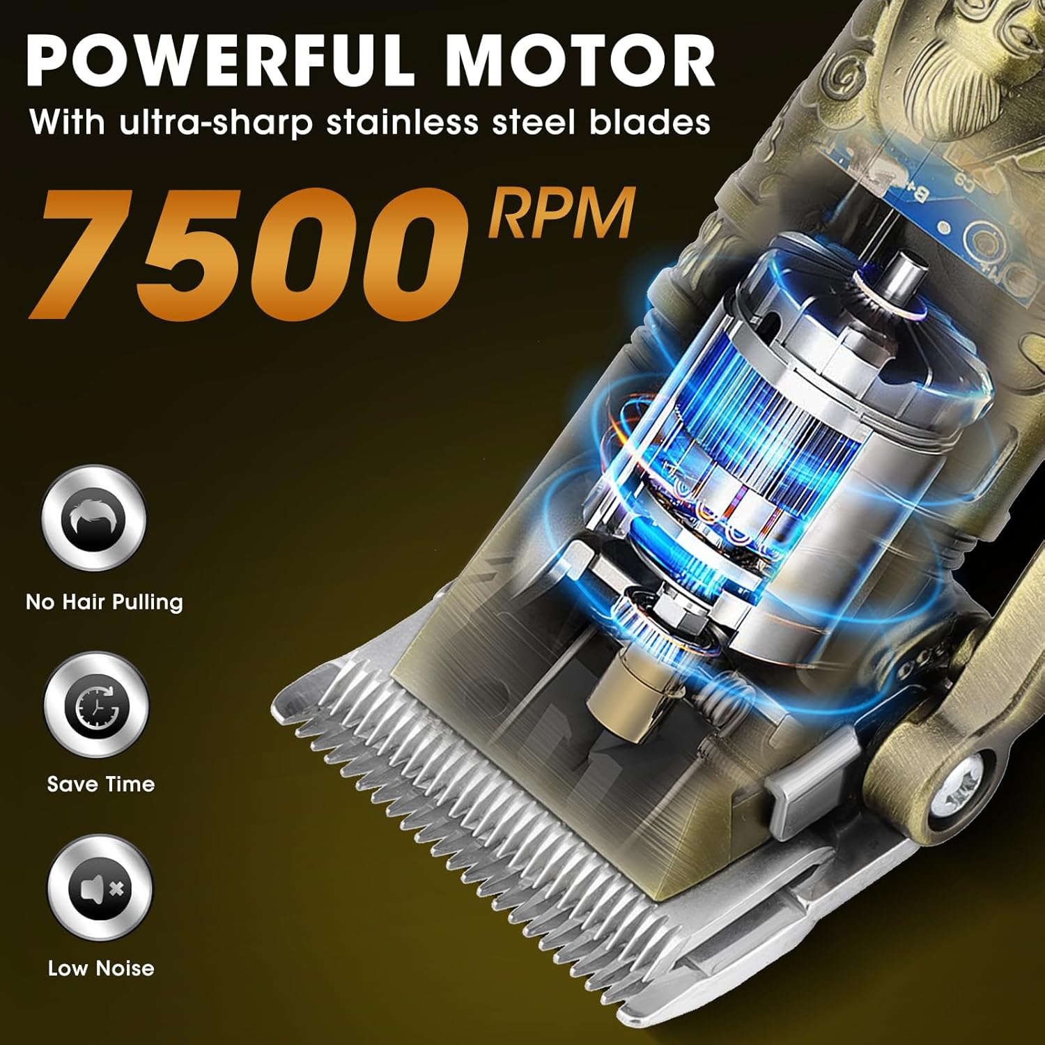 • Smart Digital LCD Display & Long-Life Battery : The ultra-clear LCD can clearly show you the remaining charge, battery status and remind you to drip blade oil in time. Built-in 2000mAh high capacity battery, charge for just 2.5 hours and get up to 150 minutes of cordless use. This premium hair clipper set is great for travelling, holidays, business trips.
