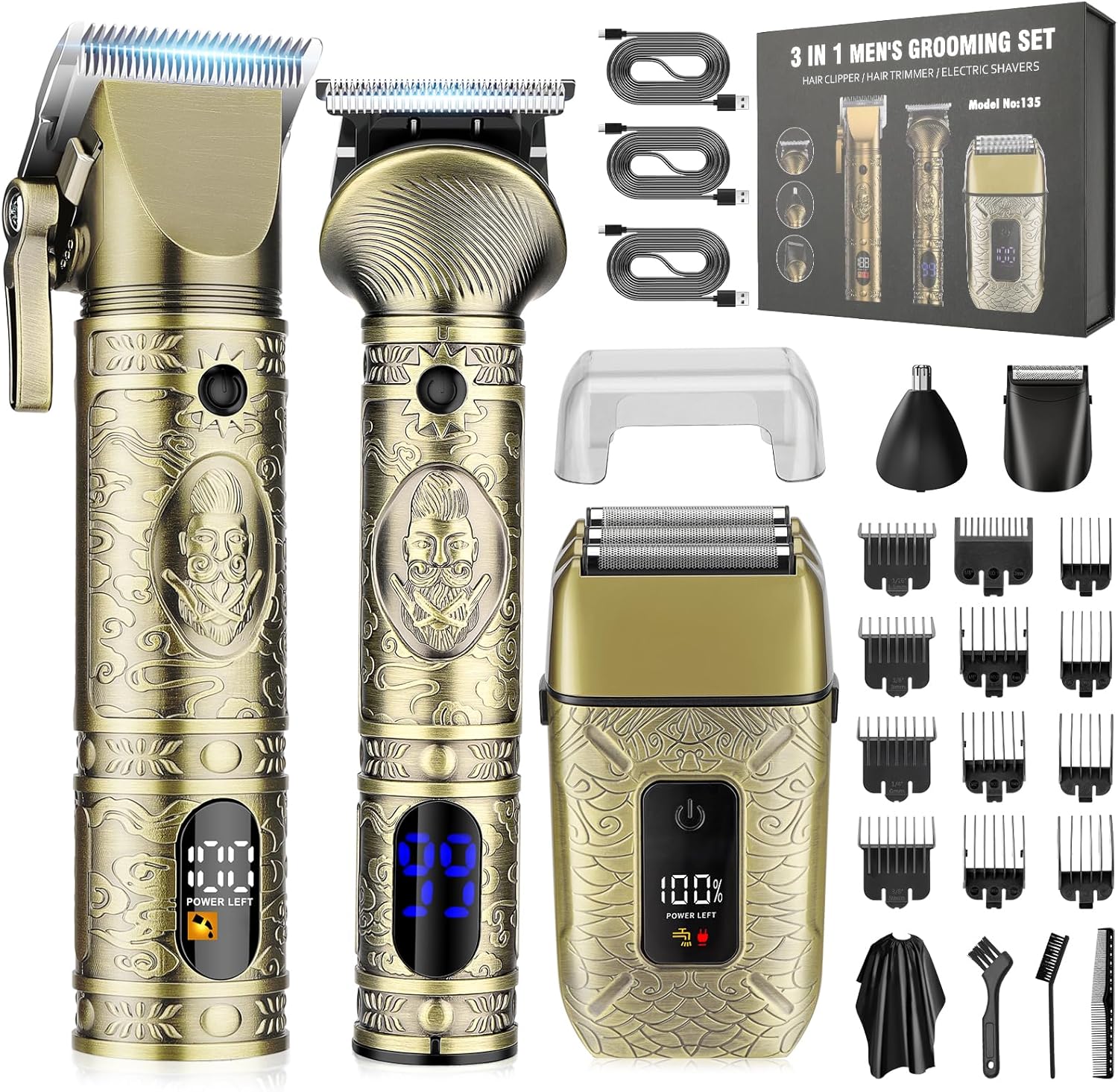 RESUXI Professional Hair Clippers for Men Electric Razor Shavers Nose Hair Trimmer and Detail Trimmer 5 Pcs Set,Cordless Beard Trimmer Barber Clippers for Hair Cutting Mens Grooming Kit