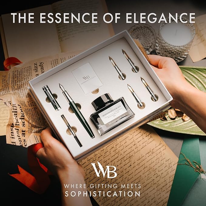 • 🎁 All-inclusive Fountain Pen Gift Set - Includes luxurious fountain pen, ink bottle, ink converter, 3 x blue ink cartridges, 3 x black ink cartridges, 4 x replacement nibs, and premium gift package - ready to be gifted. Included with every order is a complete instruction and Calligraphy Practice Sheets booklets. All the information you'll need to get started using and enjoying your luxurious writing tool will be right at your fingertips!