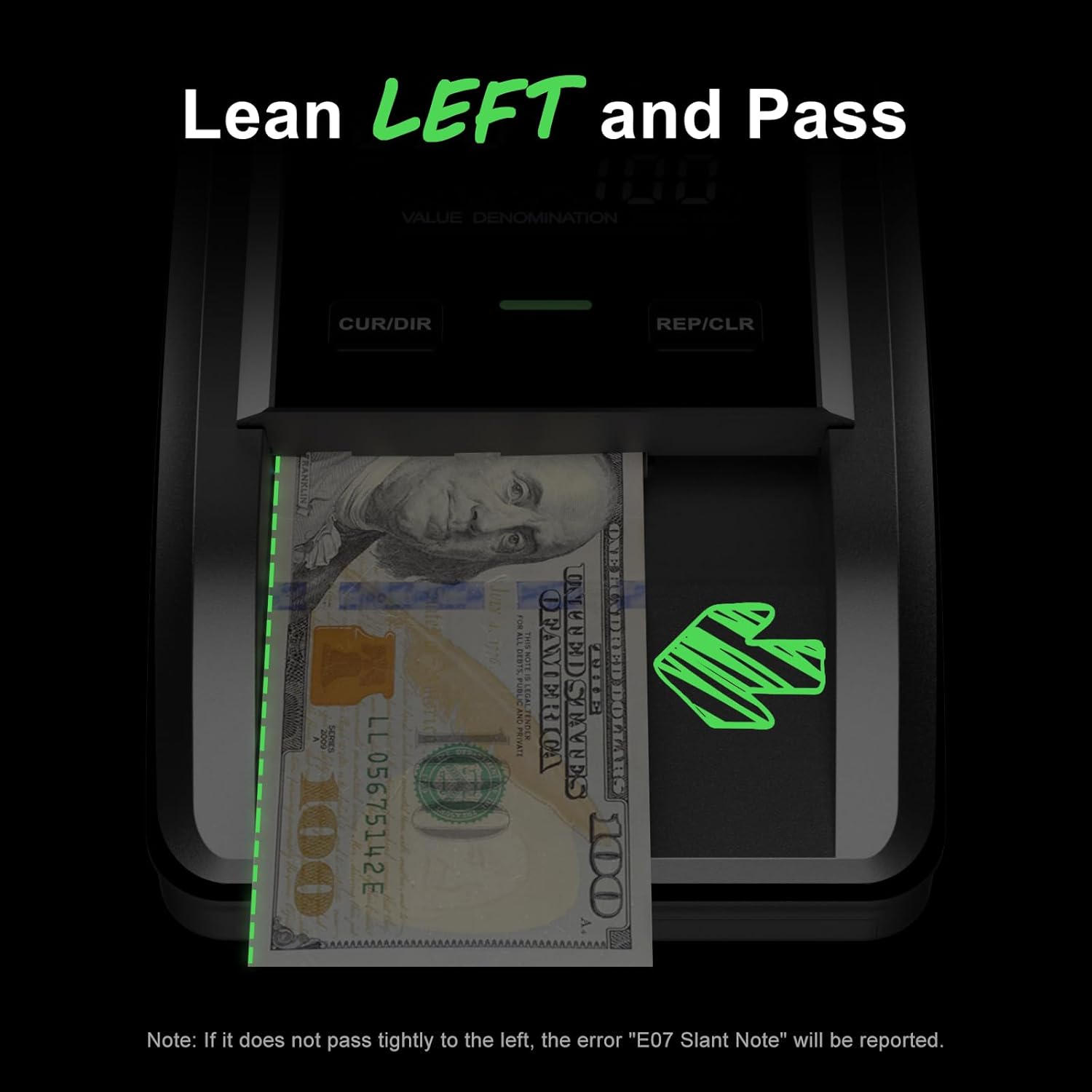 • 【Convenient and Fast】The counterfeit money detector support 4-way orientation feeding , any direction can be detected, just pass the banknote close to the left side of the machine, you can identify the authenticity of banknotes in 0.5 second.