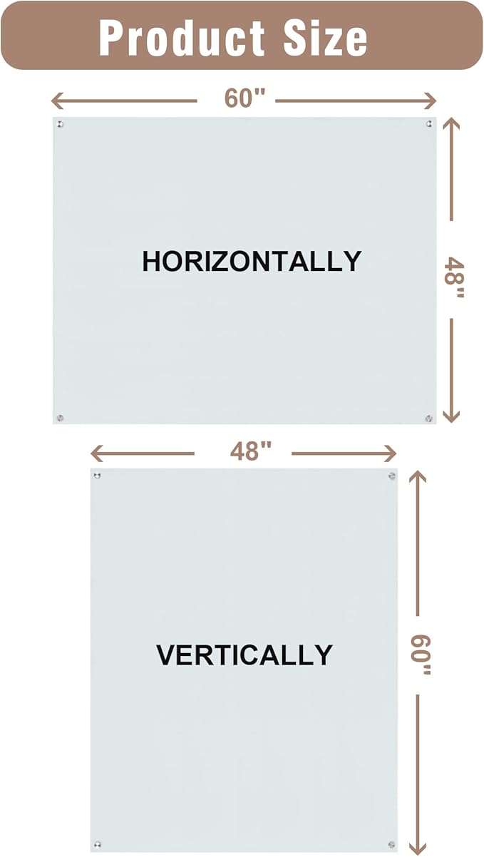 Magnetic Glass Whiteboard,60"x48" Wall Mounted Frameless Dry Erase Board for Office, Home & School White