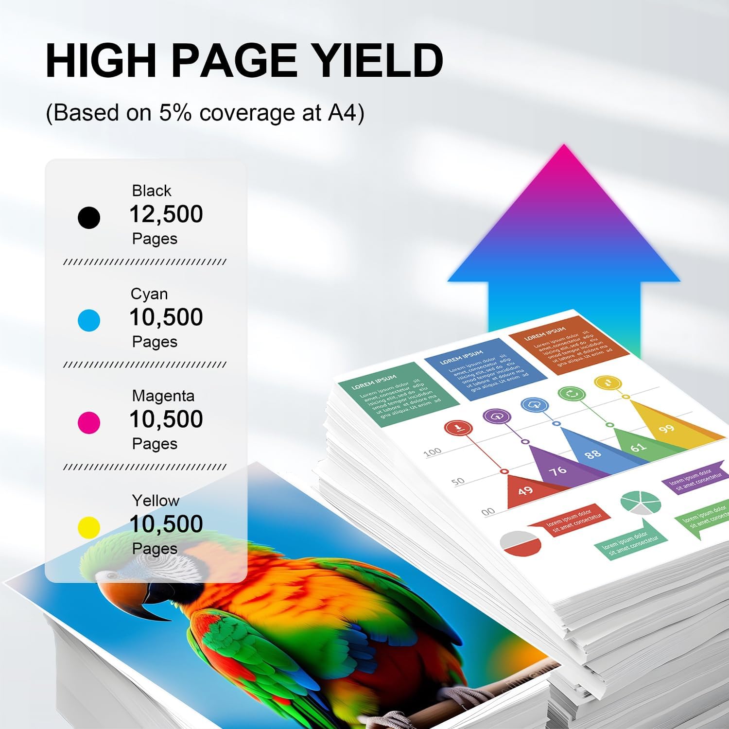 • High Page Yield: 12,500 Pages Compatible for 655A black toner and 10,500 Pages per Color toner at 5% coverage (Letter/A4). The inbuilt chip can indicate the toner level left and you can arrange a new replacement when needed