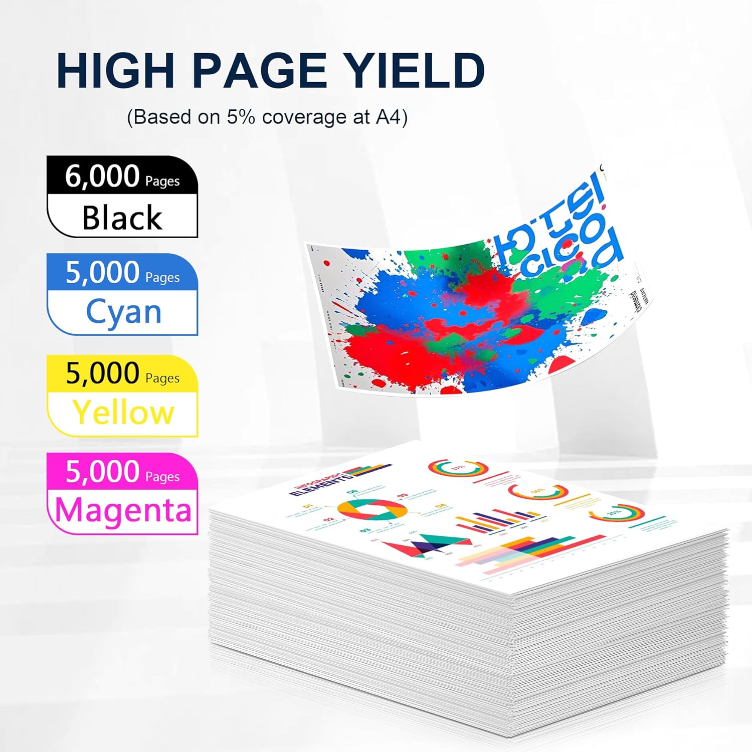 • High Page Yield: 6,000 pages for 508A CF360A black toner cartridge and 5,000 pages for per 508A CF361A CF362A CF363A color toner cartridge based on 5% coverage (Letter/A4)