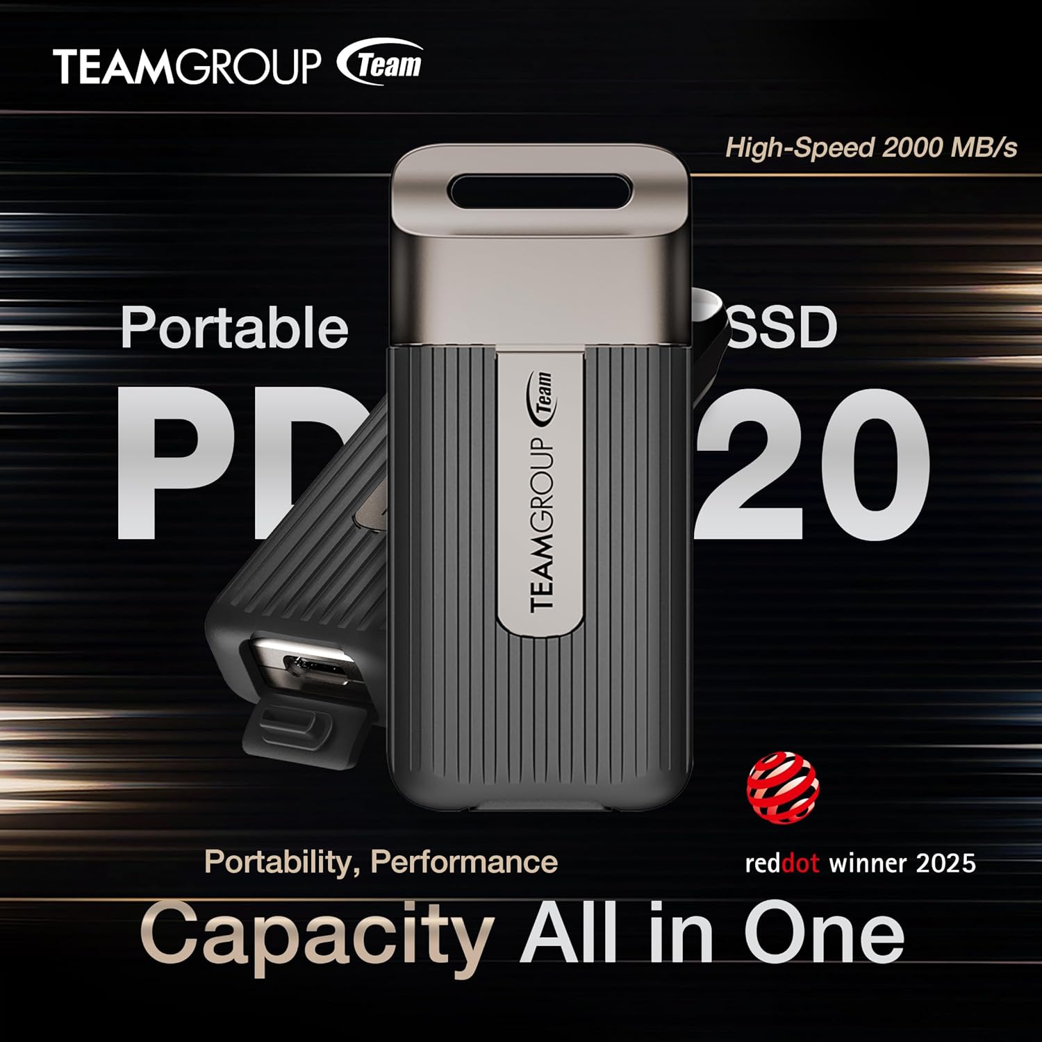 TEAMGROUP PD20 1TB Portable External Solid State Drive SSD Read up to 2000MB/s USB 3.2 Gen2x2 Type-C Waterproof Dustproof IP54 TPSEG5001T0C102
