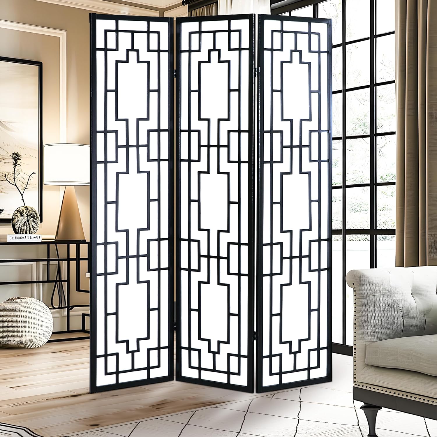 NicBex Room Divider 3 Panel Room Dividers with Geometric Lattice Design Partition Room Dividers and Folding Privacy Screens Wall Divider for Office, Room Separation,70" W x 0.8" D x 70.3" H, Black