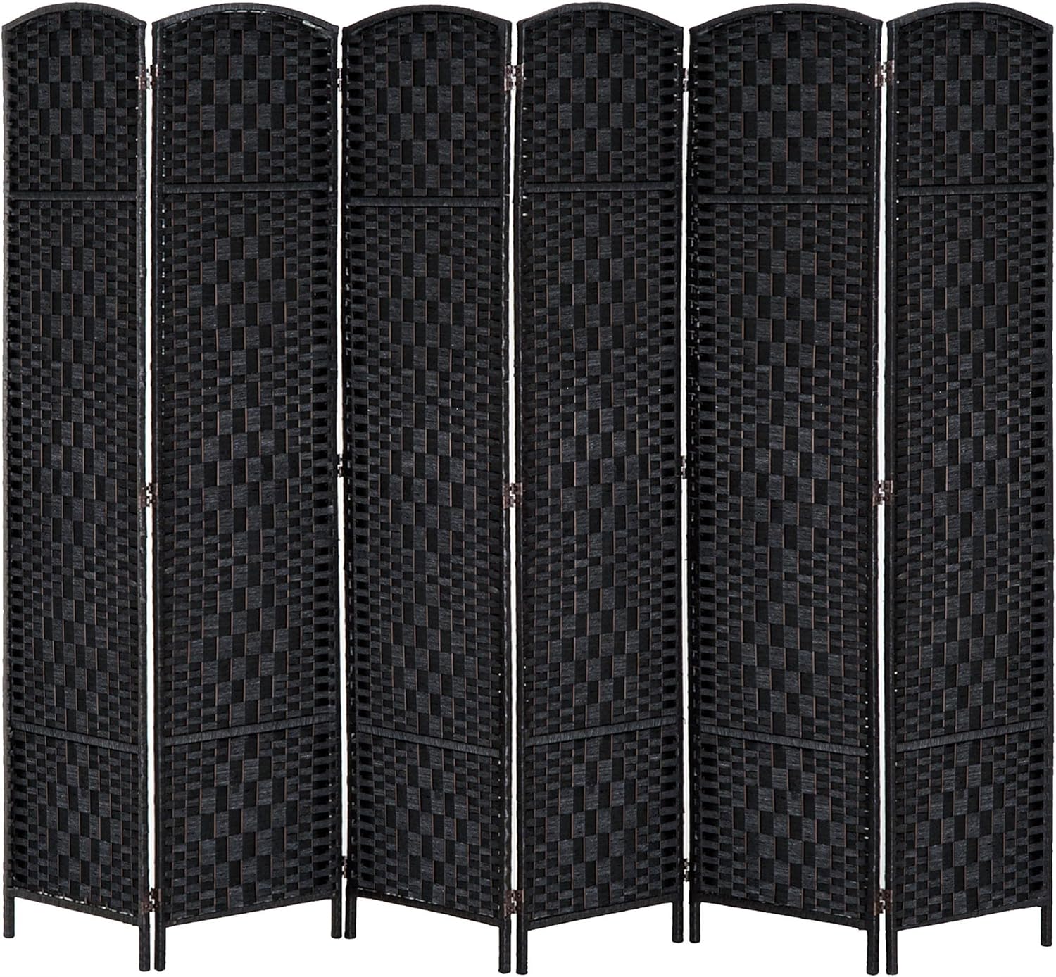 NicBex Room Divider 6 Panel Room Dividers with Wicker Weave Design Partition Room Dividers and Folding Privacy Screens 6 FT Wall Divider for Office, Room Separation,106.25"W x 0.75"D x 70.75"H, Black