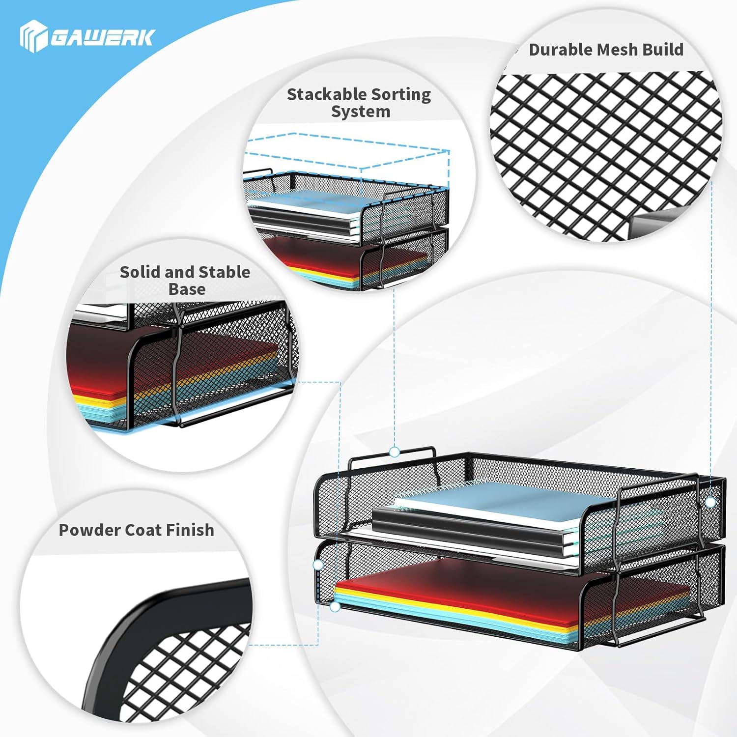 • ✏️ 【Stackable Design】 Stackable trays help maximize desk space while keeping documents within easy reach.