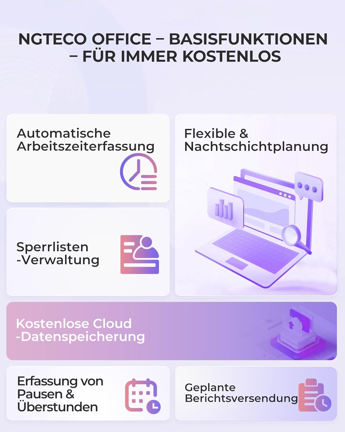 • Free Cloud Service: The TC1 Cloud-Connect time clock, powered by NGTeco Office software and app, allows you to access real-time punch data from anywhere. Benefit from accurate hour calculations and automatic report generation through any web browser.
