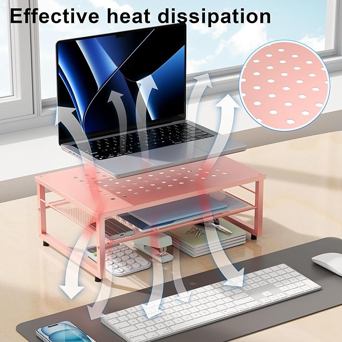 • 【Practical and Stylish】 The laptop stand has a simple yet sophisticated dual-layer design, providing ample space to store various office supplies, keeping your desk tidy. This allows you to work more efficiently in a comfortable and organized environment.