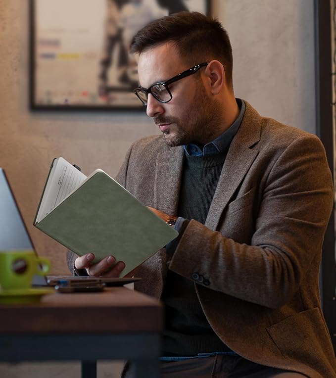 • 【180°Lay Flat Design】 Make a statement with the stylish green edge of this journal notebook, adding a touch of vibrancy to your writing experience. The 180°lay flat design allows for seamless writing and effortless page-turning, enhancing your comfort and convenience. Standard 8mm space classic college ruled journals. Each page has “Memo No” and “Date” header to help you keep track of the date. Unleash your creativity with this notebook, tailor-made for journaling notebooks enthusiasts.