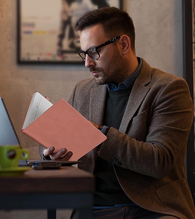 • 【180°Lay Flat Design】 Make a statement with the stylish pink edge of this journal notebook, adding a touch of vibrancy to your writing experience. The 180°lay flat design allows for seamless writing and effortless page-turning, enhancing your comfort and convenience. Standard 8mm space classic college ruled journals. Each page has “Memo No” and “Date” header to help you keep track of the date. Unleash your creativity with this notebook, tailor-made for journaling notebooks enthusiasts.