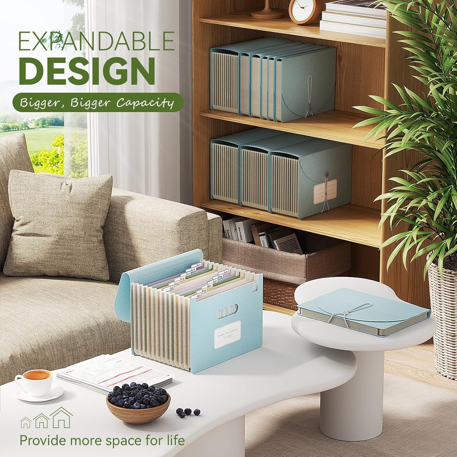 Accordion File Organizer, 13 Pockets Wheat Straw Expanding File Folder, Portable Monthly Paper Bill Tax Receipt Organizer, Letter A4 Size Document Holder with Colorful Tab - Sky Blue