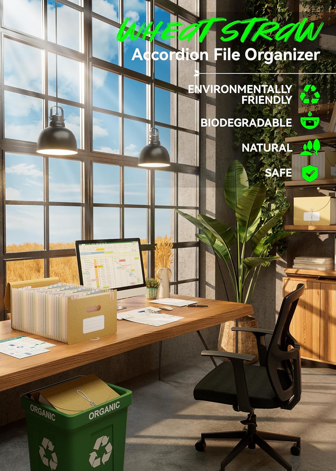 • 【Wheat Straw Material】Ecostash's Wheat Straw Accordion File Organizer are BPA-free, making them safer and healthier compared to plastic and paper file folders. Unlike plastic and paper hanging folders, wheat straw material is sourced from renewable agricultural waste, reducing dependence on petrochemical plastics and forest logging. This helps reduce greenhouse gas emissions, making a collective contribution to protecting the Earth's ecology.