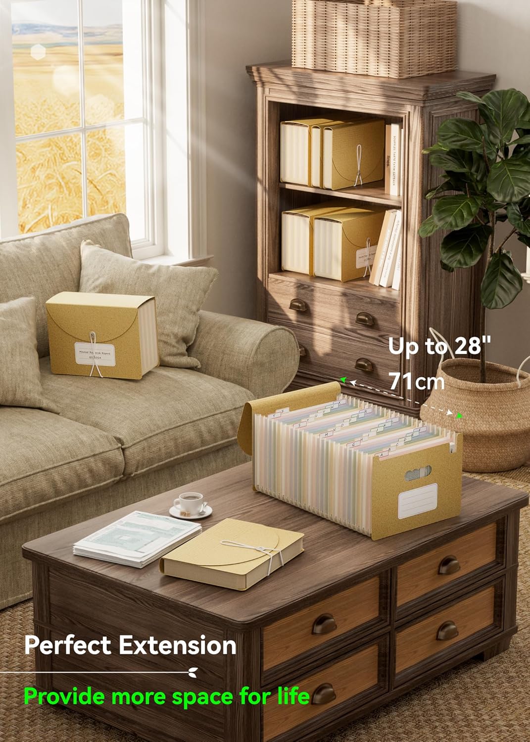 • 【Perfect Expansion】The accordion design ensures ample expansion space during use, allowing for more files to be stored, and can be compressed and secured with elastic bands when not in use, providing more space for life and increasing convenience. The flexible cover and two elastic bands ensure that the folder closes securely, no matter how many files are inside.