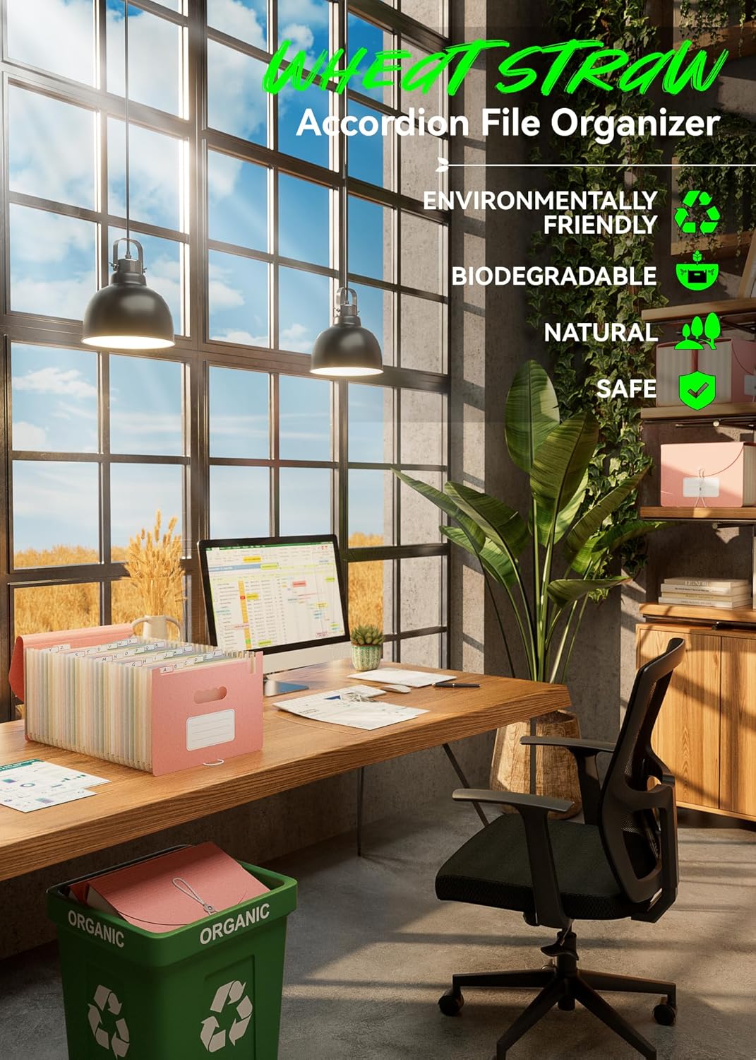 • 【Wheat Straw Material】Ecostash's Wheat Straw Accordion File Organizer are BPA-free, making them safer and healthier compared to plastic and paper file folders. Unlike plastic and paper hanging folders, wheat straw material is sourced from renewable agricultural waste, reducing dependence on petrochemical plastics and forest logging. This helps reduce greenhouse gas emissions, making a collective contribution to protecting the Earth's ecology