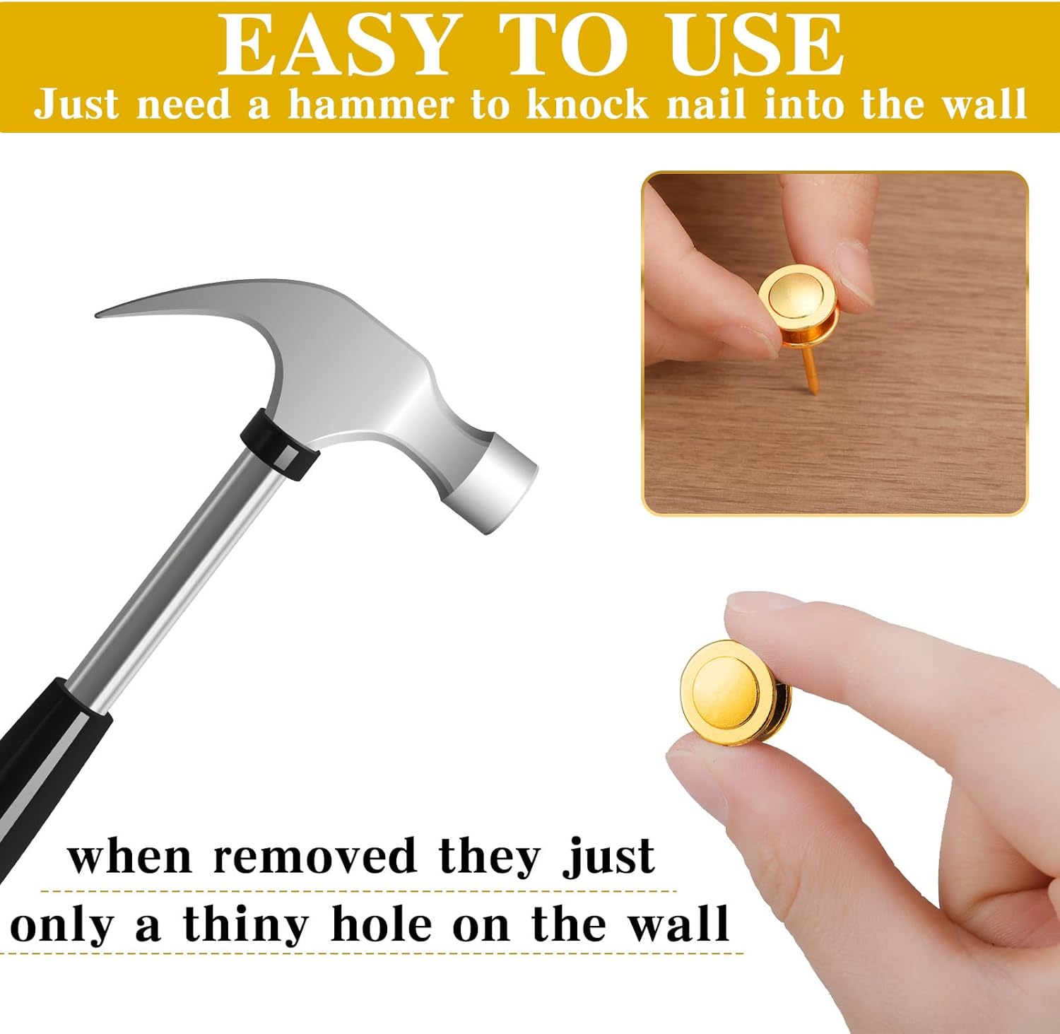Ferraycle 40 Piece Double Headed Picture Hangers Nails 4 Size Long Thumb Tacks for Wall Hanging Decorative Nails Push Pins Picture Hooks for Drywall Photo Decor, 10/20/ 30/ 50lb(Gold)
