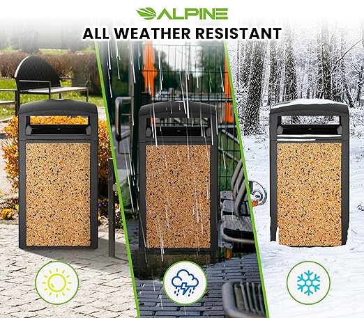 • Robust Construction: Built with a powder-coated steel lid and frame, this outdoor commercial trash can withstands all weather conditions, ensuring long-lasting durability and a clean, professional appearance.