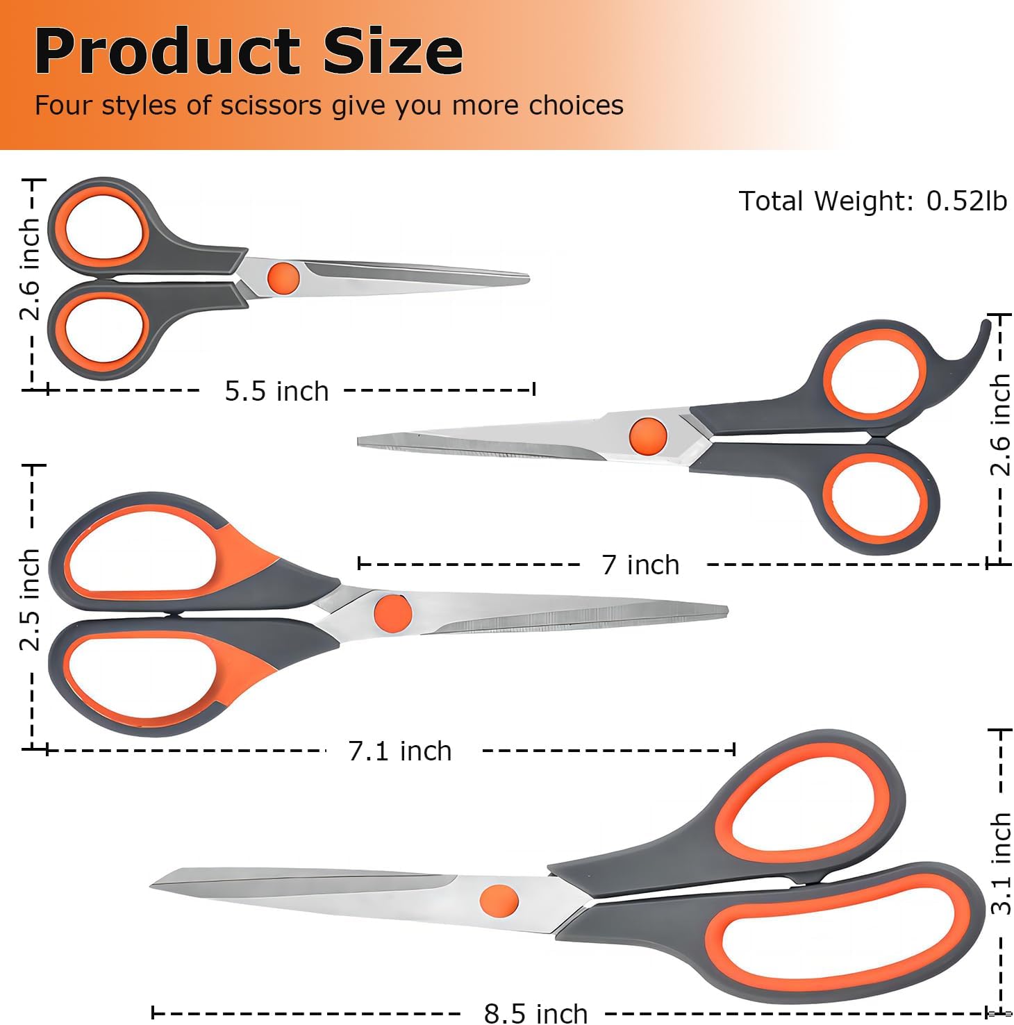 • Ultra-Portable 4-Pack Scissors for Anywhere Use - Compact and lightweight, this scissors set fits effortlessly in desk drawers, backpacks, or travel kits—ideal for office, classroom, or on-the-go crafting.