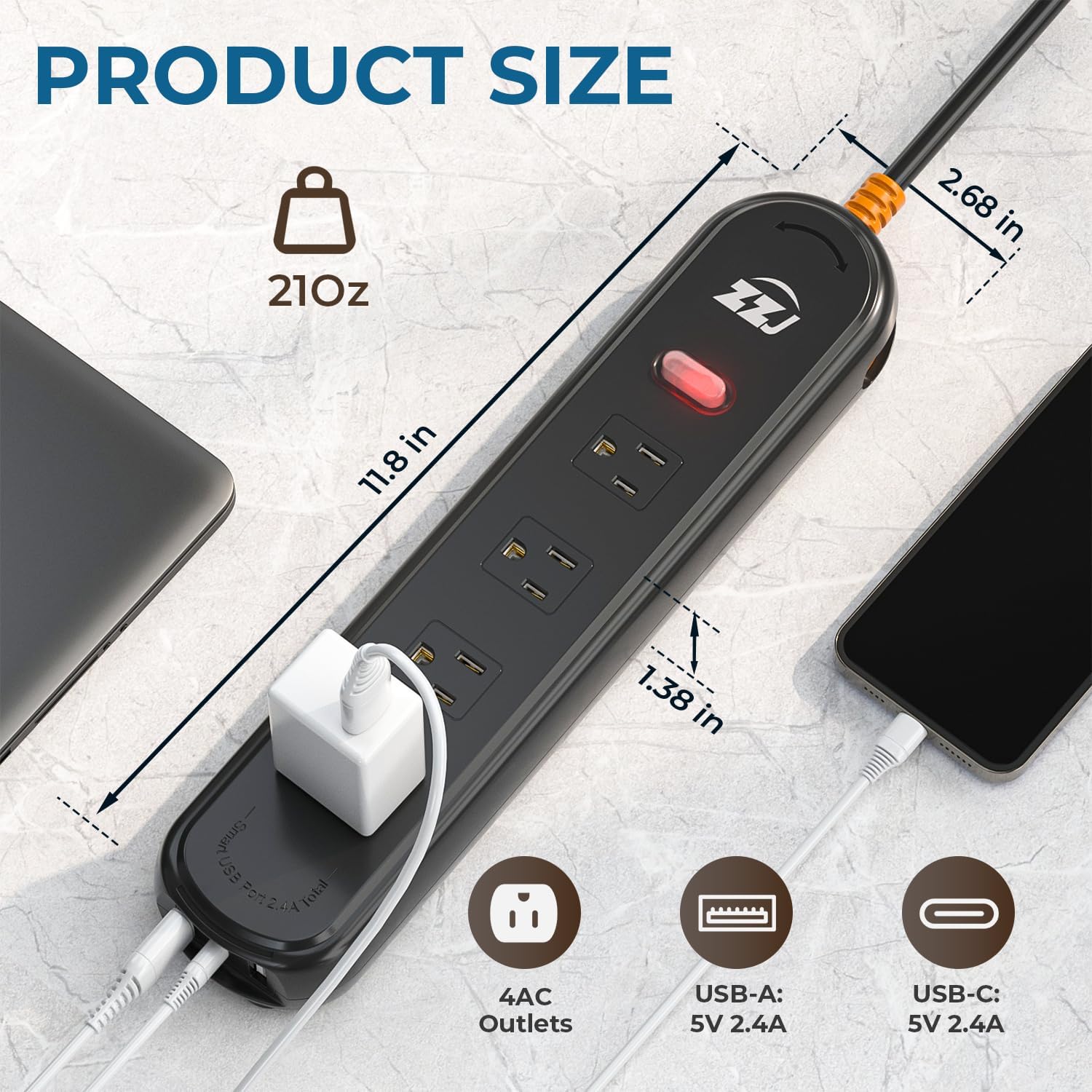 • 7-in-1 Power Strip :Features 4 AC outlets, 2 USB-C port, and 1 USB-A ports to give you everything you need to power up all of your appliances and mobile devices.USB-C: 5V 3.1A (15.5W max) USB-A: 5V 3.1A (2.4A max per port); 2 USB-A ports and 1 USB-C port share 5V 3.1A. product weight 808g