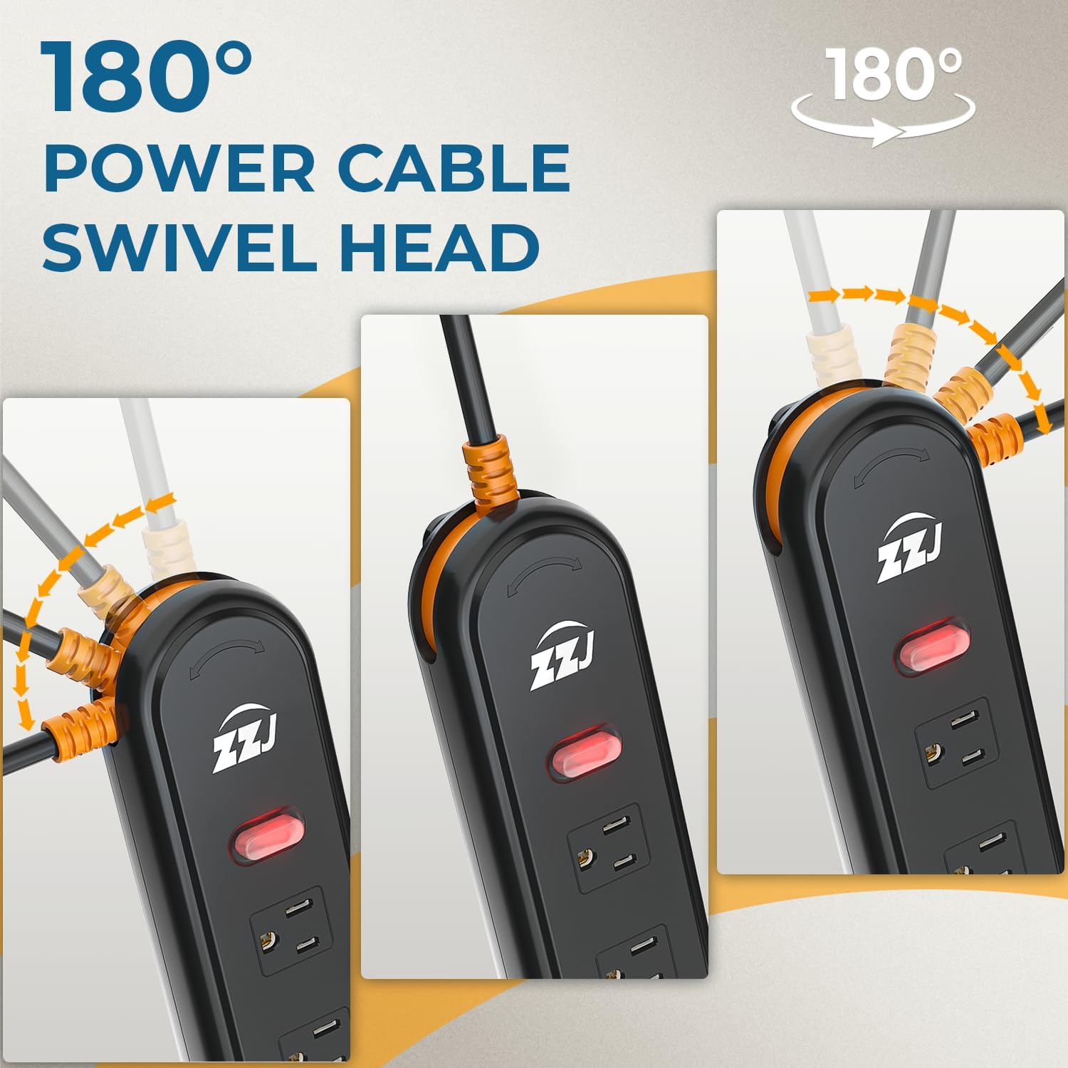 • 180° Power Cord Swivel Head: Free to switch the socket placement, easy to apply to desk, meeting room, home, university dormitory, TV cabinet, bedside and other areas, let the socket free placement.