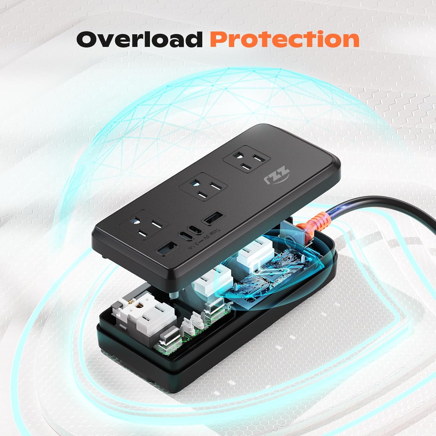 • 7-in-1 Power Strip :Features 3 AC outlets, 2 USB-C port, and 2 USB-A ports to give you everything you need to power up all of your appliances and mobile devices.USB-C: 5V 3.1A (15.5W max) USB-A: 5V 3.1A (2.4A max per port); 2 USB-A ports and 2 USB-C port share 5V 3.1A. product weight 683g