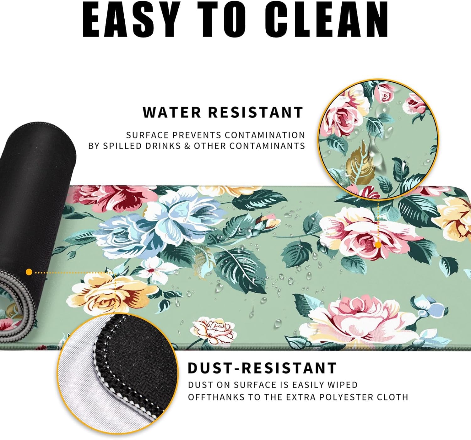 XL Mouse Pad Gaming Kawaii Cute Retro Rose Floral Extra Large Mousepad (31.5x11.8 in), Desk Mat Pad Home Office Decor Mouse Pad Stitched Edges Smooth Surface Non-Slip Bottom Mat