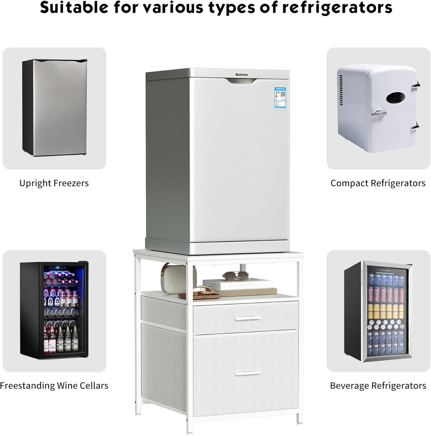 • Fits Various Mini Fridges - Our mini fridge cabinet is designed to fit most mini fridge models on the market, including standalone wine coolers, upright freezers, compact fridges, and beverage coolers, providing you with reliable support.