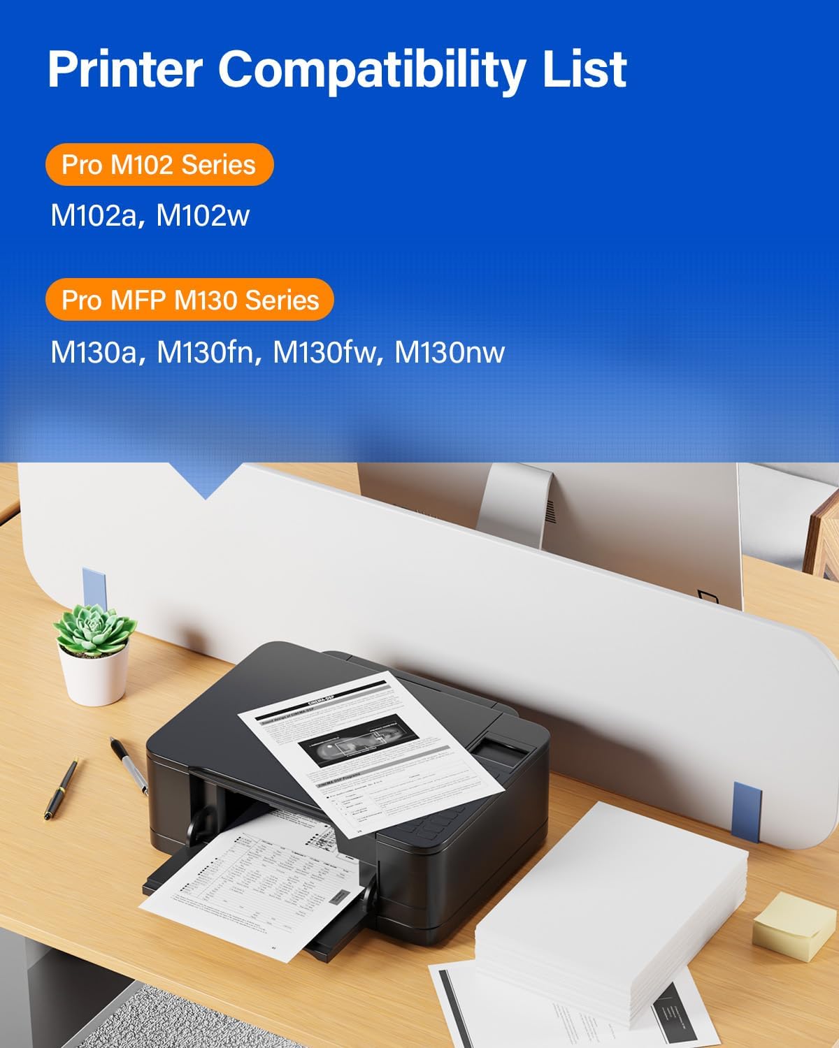 • Compatible Devices : Compatible for HP LaserJet Pro M102w, M102a, Pro MFP M130fn, MFP M130nw, MFP M130fw, MFP M130a, M102 M130 Series Printers Compatible for HP LaserJet Pro M102w, M102a, Pro MFP M130fn, MFP M130nw, MFP M130fw, MFP M130a, M102 M130 Series Printers