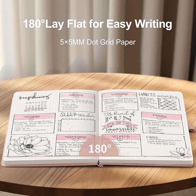 • BULLET DOTTED JOURNAL: This dot grid notebook features 64 sheets/128 pages, providing ample space for writing. The A5 size 5.7" × 8.3" makes it easy to carry. Crafted with a durable and waterproof vegan leather hardcover, it ensures your journal stay protected in any environment