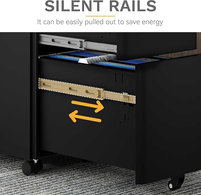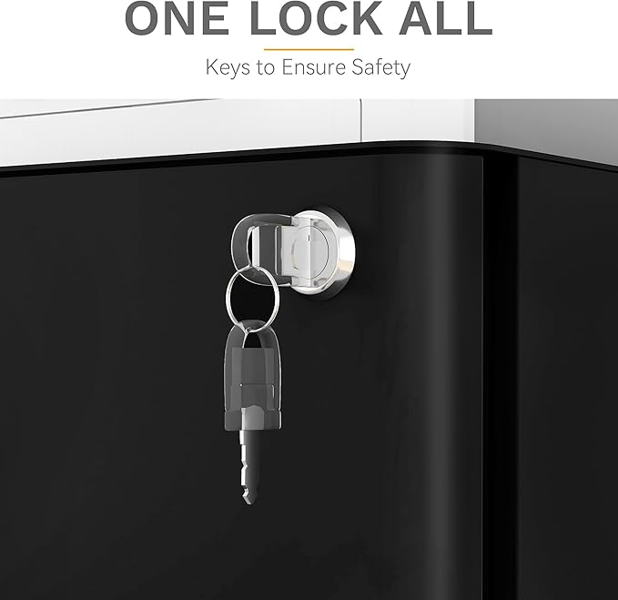 • Effortless Mobility with Wheels: Featuring 5 wheels in total, icluding 4 swivel casters (two of which are lockable) and an anti-tip central caster, this lockable filing cabinet offers easy and secure movement; Multi-directional swivel casters allow for smooth, 360-degree movement with minimal effort