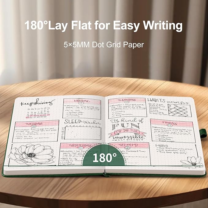 • BULLET DOTTED JOURNAL: This dot grid notebook features 64 sheets/128 pages, providing ample space for writing. The A5 size 5.7" × 8.3" makes it easy to carry. Crafted with a durable and waterproof vegan leather hardcover, it ensures your journal stay protected in any environment