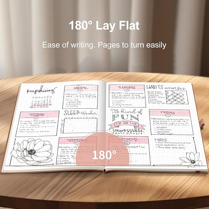 • LAY FLAT DESIGN FOR WRITING: The thread-bound design allows this notebook to 180° lay flat, ensuring easy writing and reading for both right and left-handed users without awkward hand positions. This provides an ideal ergonomic writing experience