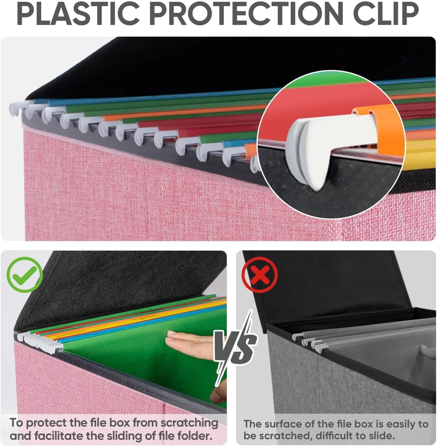 • [UNIVERSAL SIZE] Our file box with lid fits letter-sized files. It is designed for efficiency and functionality, with its smooth PVC slide rails on both sides, you can effortlessly slide file folders for easy access and neatly arranged. The lid fits snugly on the box after hanging folders. (NOTE: file folders are not included)