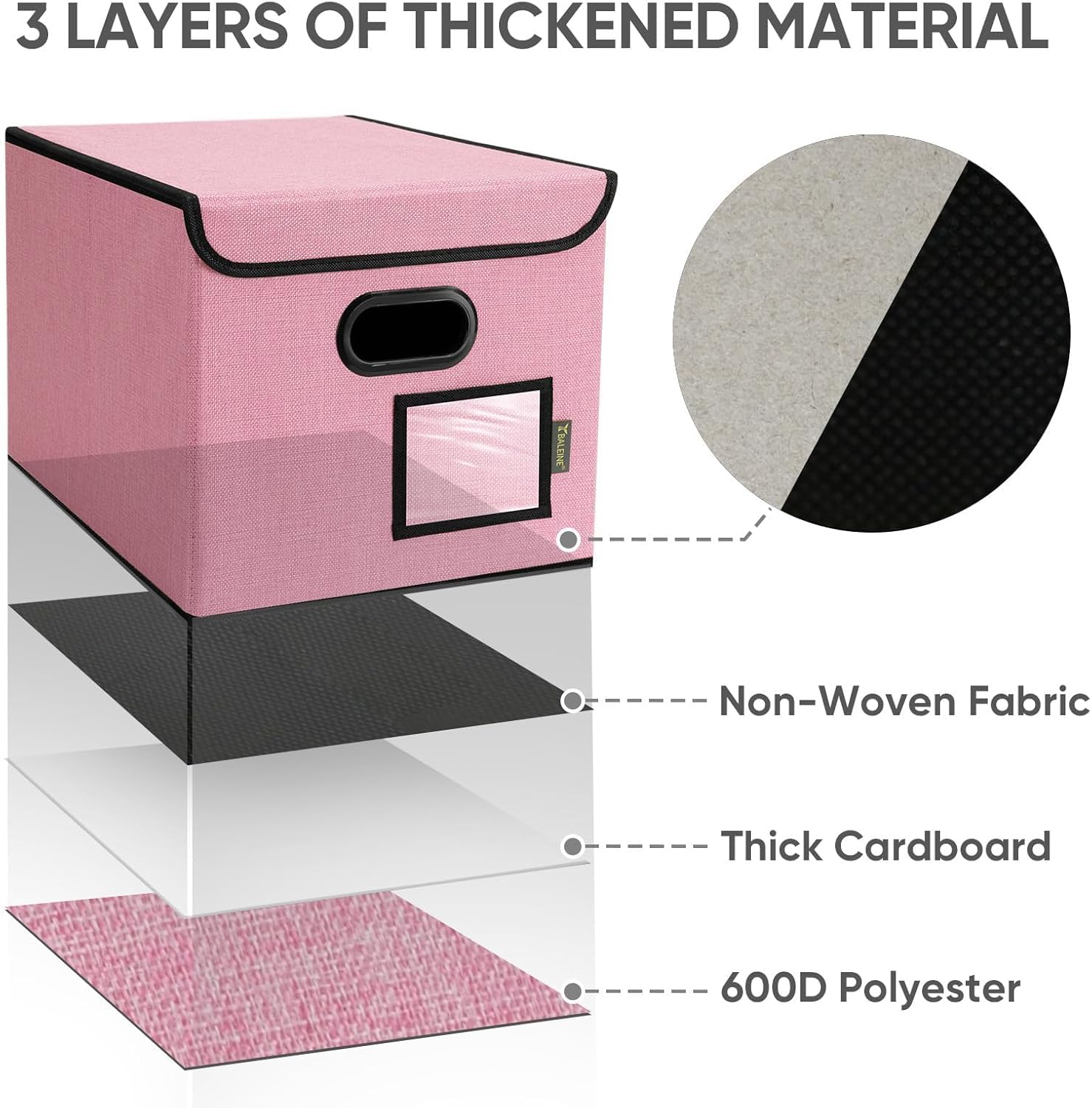 • [DURABLE MATERIAL] The outer layer of our filing box is crafted from high-quality polyester fabric and reinforced with thick cardboard in the middle. This construction ensures that the box maintains its shape and provides better bearing capacity for important documents and files. Its textured appearance can also serve as a stylish decorative element in any office or home.