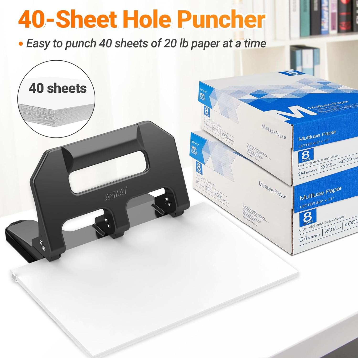3 Hole Punch Heavy Duty, AFMAT 3 Hole Puncher for Binder, 10000+ Punching Times, 40-Sheet Three Hole Punch, Metal Hole Puncher 3 Ring, 50% Reduced Effort, Bulit-in S.S. Paper Guide, Gray