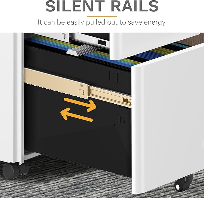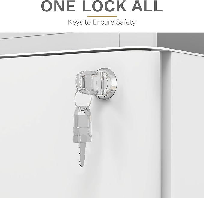 • Effortless Mobility with Wheels: Featuring 5 wheels in total, icluding 4 swivel casters (two of which are lockable) and an anti-tip central caster, this lockable filing cabinet offers easy and secure movement; Multi-directional swivel casters allow for smooth, 360-degree movement with minimal effort