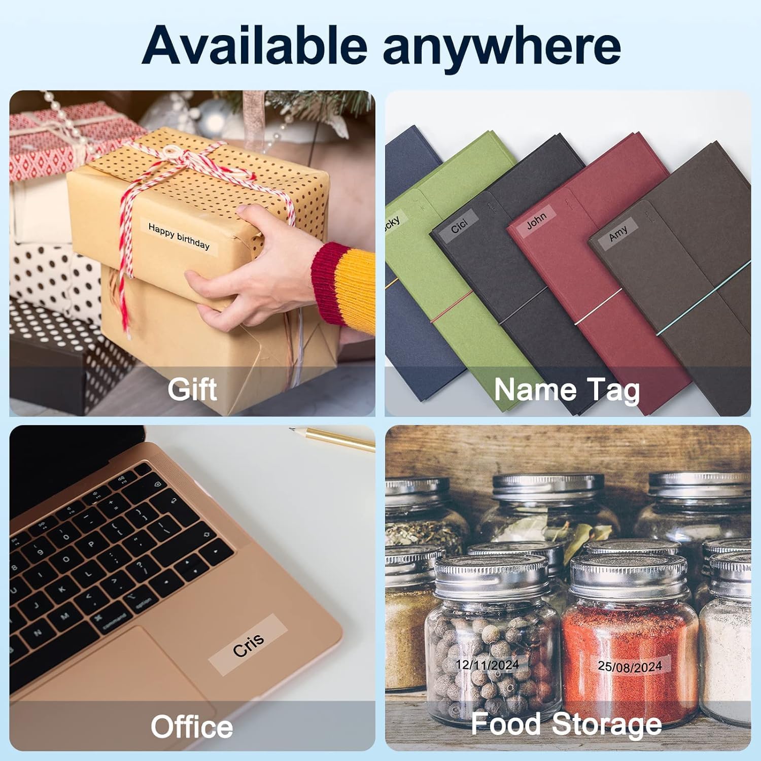 • Indoor and outdoor application: you could use brother label tape 1/2" to widely label in office, school, industrial, home, retail shop, warehouse and more. It is suitable for labeling kitchen, shelving, cabinets, files, folders, accessories and more