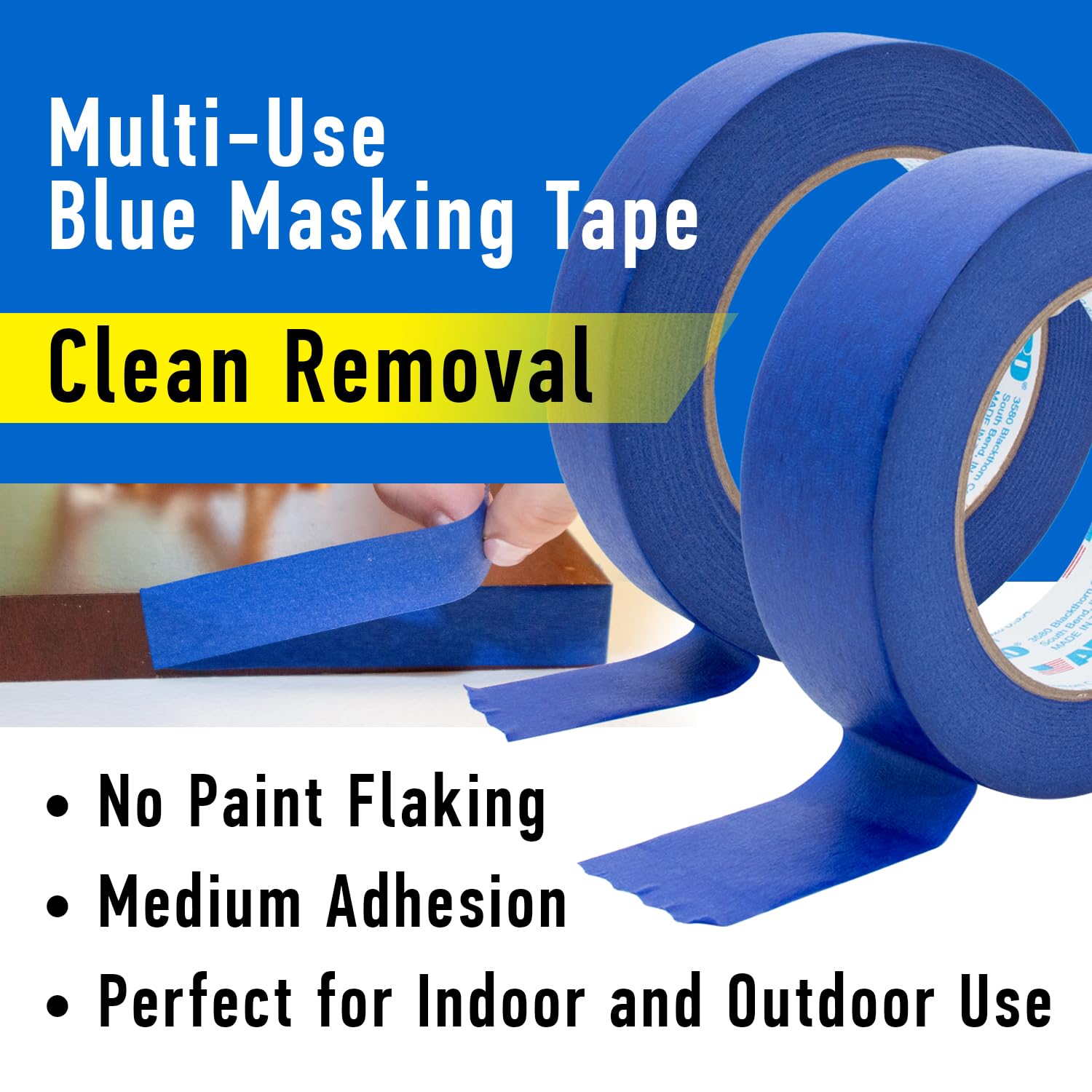 • Versatile Blue Painters Tape for Multiple Surfaces: Versatile wall tape compatible with various materials like plastic, metal, wood, and glass—perfect for all your indoor masking needs.