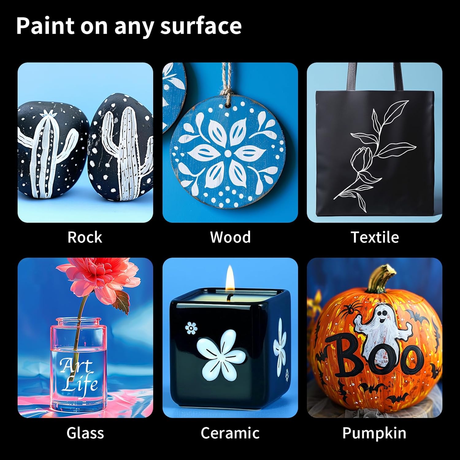 • PREMIUM QUALITY: This white-pack of paint pens features high-quality acrylic paint and a durable nib that dries opaque, so you don’t have to make a second layer! The white permanent paint marker is acid-free, waterproof and wear resistant. It’s a great tool for art projects, DIY crafts, coloring, greeting cards, poster making, painting, highlighting.