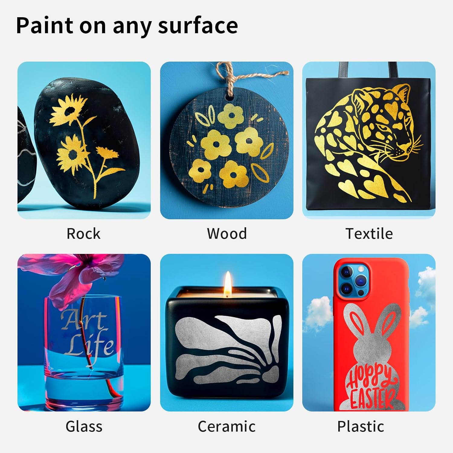 • WORKS ON ALMOST ANY SURFACES: NAWOD paint marker pens work on almost any surface. Paint on rock, canvas, wood, metal, glass, ceramic, plastic, tire, or more with these glass markers! Or use them as fine tip paint pens and paint markers for canvas. They are the best tool for creativities!