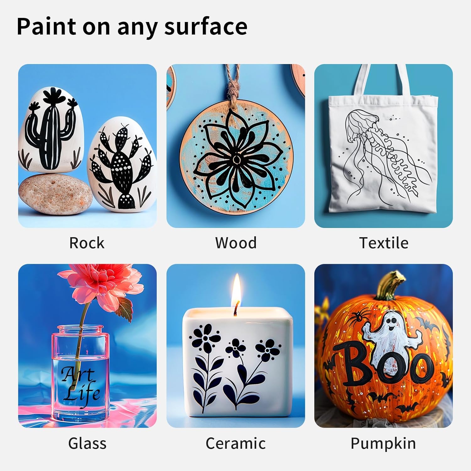 • WORKS ON ALMOST ANY SURFACES: NAWOD paint marker pens work on almost any surface. Paint on rock, canvas, wood, metal, glass, ceramic, plastic, tire, or more with these glass markers! Or use them as fine tip paint pens and paint markers for canvas. They are the best tool for creativities!
