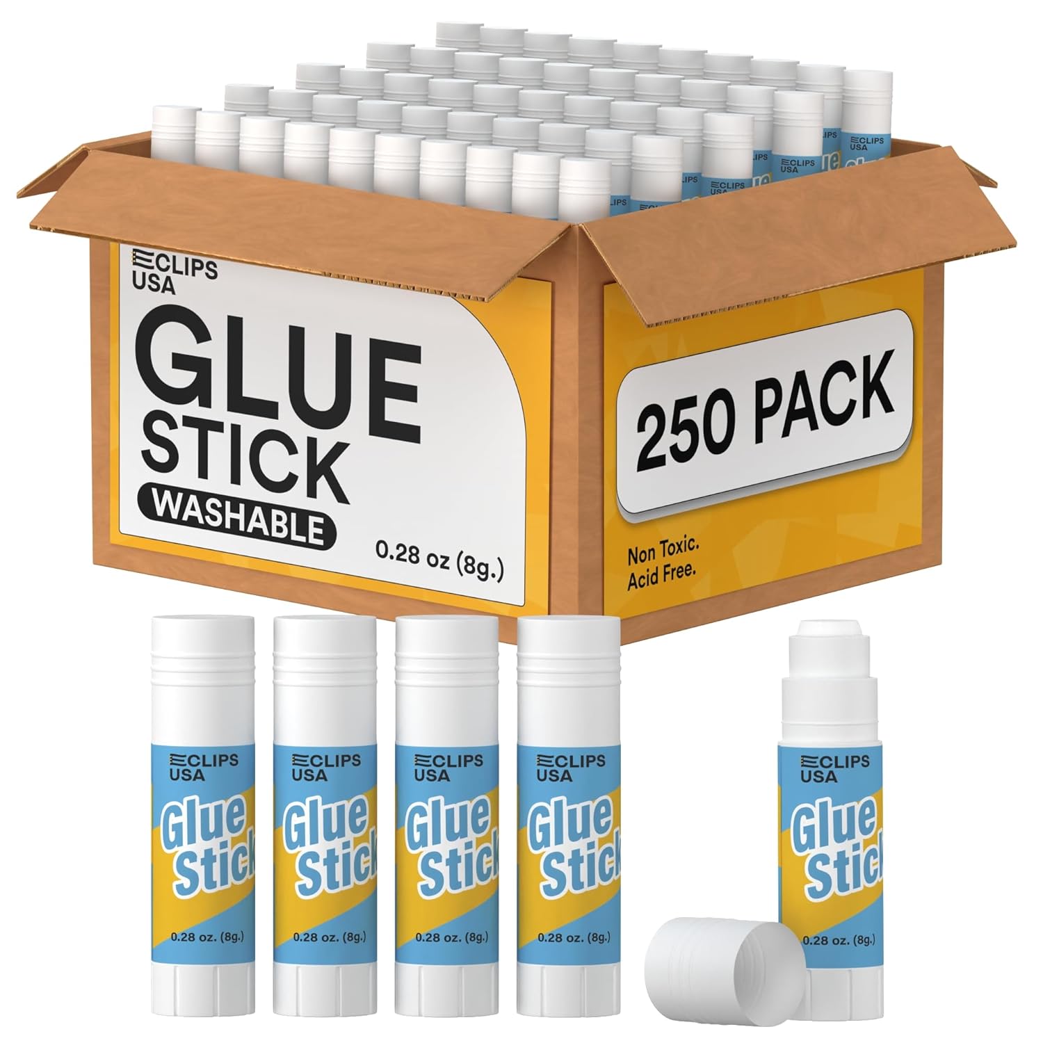 Glue Sticks Bulk (250 Pack), Washable Glue Sticks for Kids, Craft Glue for School Supplies, .28 oz, 8 Grams (250 Pack)