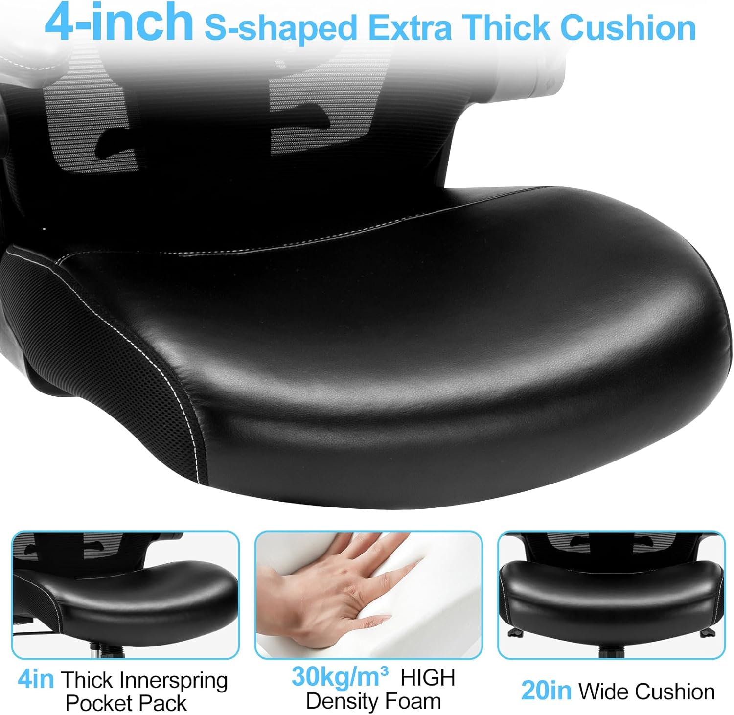 • 【ERGONOMIC DESIGN OFFICE CHAIR】 Visible at a glance, the difference is clear ! The backrest design conforms to the shape of the human spine, complemented by adjustable lumbar support to keep you comfortable during long periods of sitting. The 4-inch thick cushion gives you the feeling of working from a sofa.