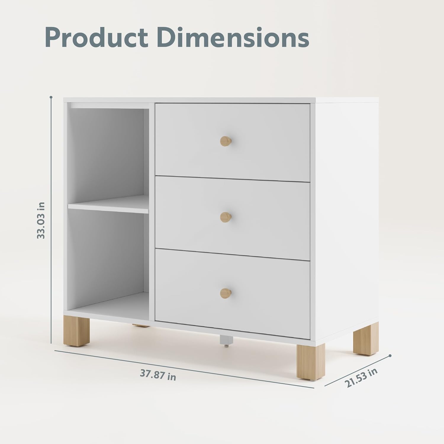 Storkcraft California 3 Drawer Combo Dresser (White with Driftwood) – GREENGUARD Gold Certified, Interlocking Drawer System, Pre-Installed Drawer Tracks for Easier Assembly, Spacious Cabinet