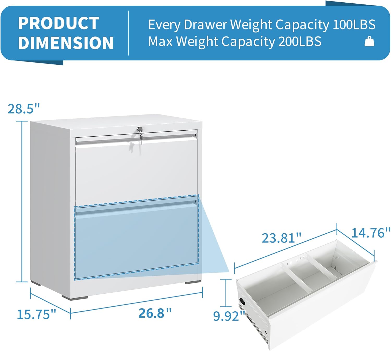 • 【Sturdy & Durable Construction】Lateral filing cabinet with 2 drawer is made of high-strength all-steel material, which is sturdy and not easily deformed. The powder-coated surface can protect it from corrosion and rust, further extending its service life. Wide lateral filing cabinet holds 220 lbs and holds printers, scanners and more.
