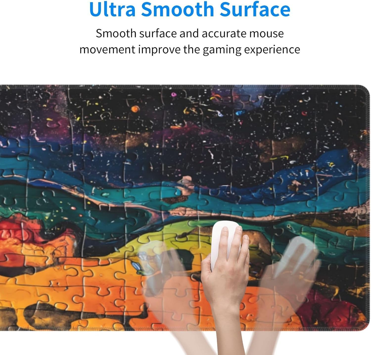 Gaming Mouse Pad Desk Pad,Extended Big Mouse Pad,31.5x11.8 Inch Long Computer Keyboard Mouse Mat Mousepad with 3mm Non-Slip Base and Stitched Edge for Gaming and Office… (Watercolor Puzzle)