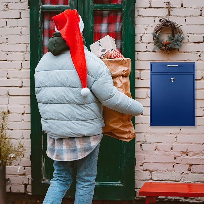 • Quality Material: crafted from quality metal material, this robust drop box promises durability; The wall mount mailbox is coated with dark blue plating which prevents peeling off paint and rust, extending the product's service life