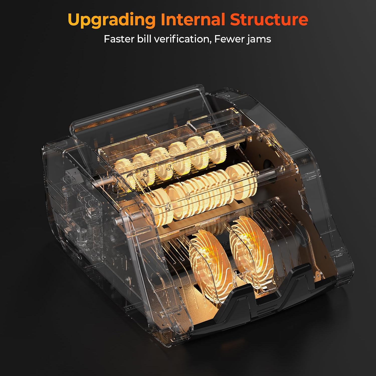 • ✅[Durable Design] The IMC20 cash counter machine is built with a brand-new internal structure and conveyor belt that can withstand wear and tear and prevent jamming and bill rips. The adjustable knob to aviod jamming and double bills, noise reduction design ensures user experience.