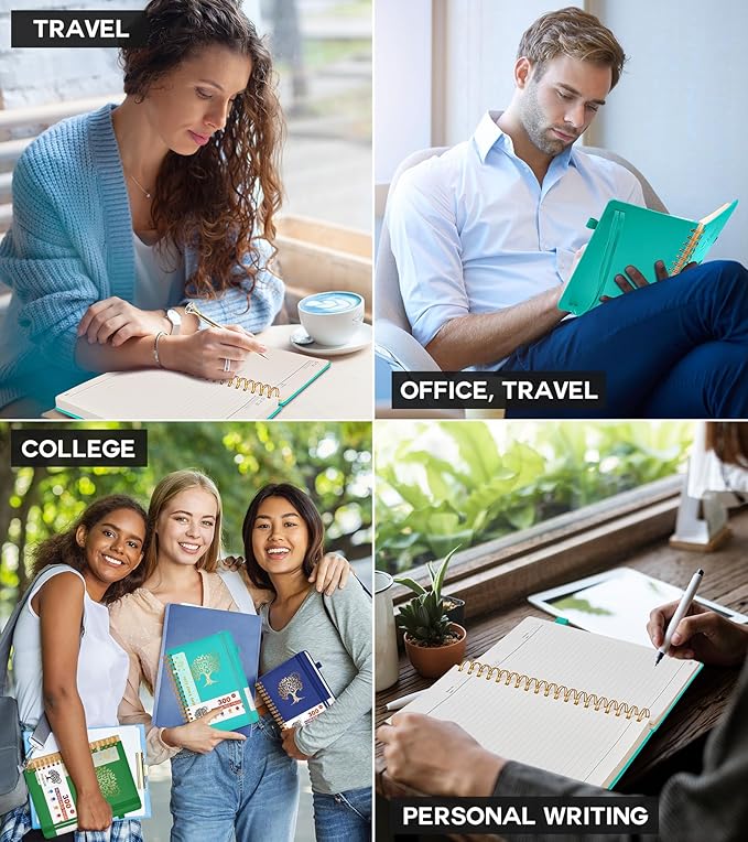 • 【A4 Large Spiral Notebook & 300 Numbered Lined Pages】This spiral journal notebook 8.5in x 11.5in features 300 numbered lined pages, 1 persona data page and 3 pages Content, offering extensive space for your notes, ideas, and sketches. The college ruled format makes it ideal for use as a journal for women, men.The 7mm line spacing ensures a comfortable writing experience, while the spiral bound design makes it a great choice for college ruled spiral notebooks and spiral bound journals.