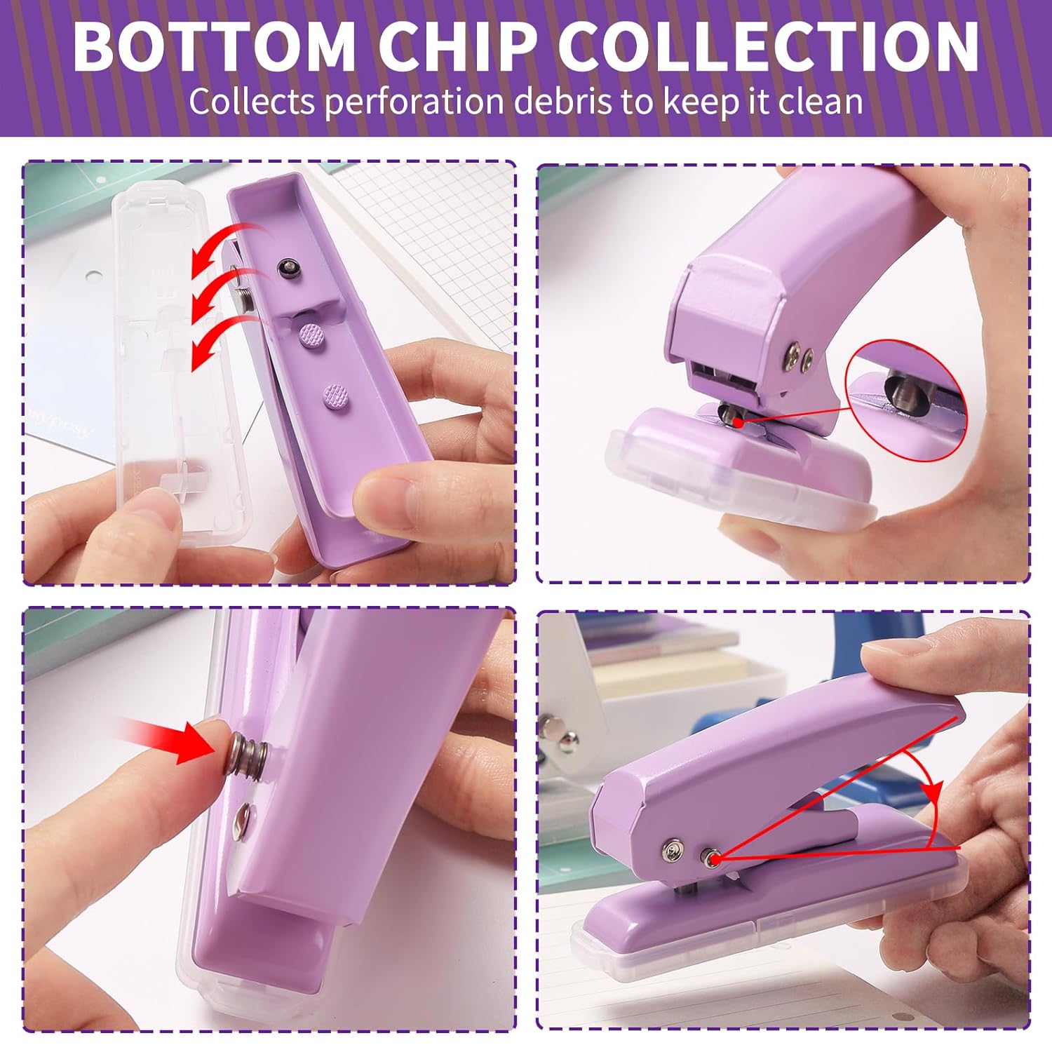 Single Hole Punch, 40 Sheets Punch Capacity, Kaluofan Hole Puncher Single, Small Hole Punch with Non-Slip Removable Base, One Hole Puncher for Crafts, Scrapbooks, Paper, Chipboard